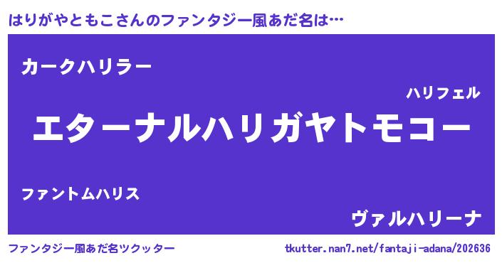| 意味不明あだ名 | 『はりがやともこフォーエバー』 |