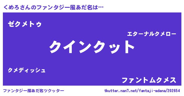 | 女子向けラノベタイトル風あだ名 | 『くめろ夫妻のなれそめ』『闇のくめろ』 |