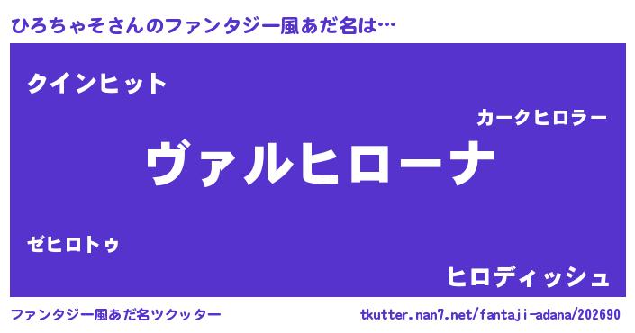 | 男性向けラノベタイトル風あだ名 | 『ひろちゃそに滅ぼされるだけの簡単なお仕事です』 |