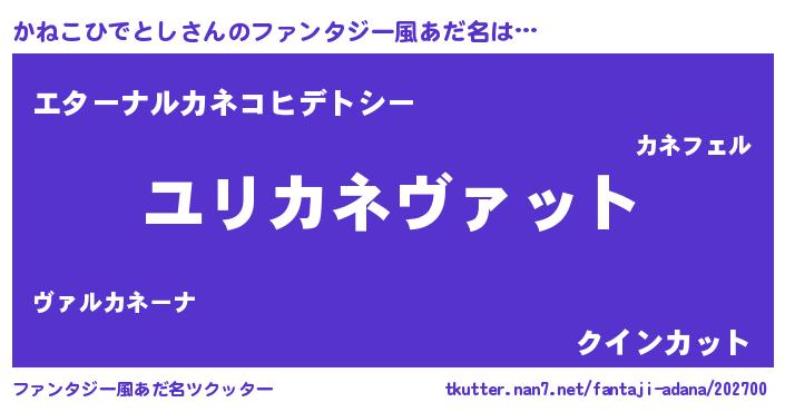 | 男性向けラノベタイトル風あだ名 | 『転生したらかねこひでとしだった件』 |