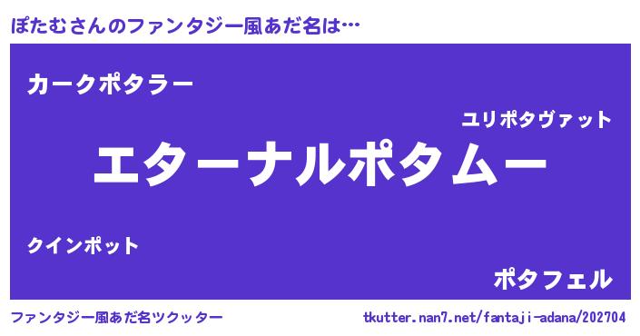 | 女子向けラノベタイトル風あだ名 | 『ぽたむ伯爵の花嫁』『死神ぽたむの再婚』 |