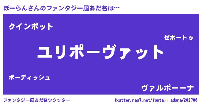 | ヘコむあだ名 | 『ぽーらん(笑)』『牛乳』『ぽーっ子』 |