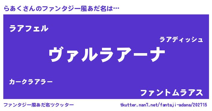 | 男性向けラノベタイトル風あだ名 | 『この素晴らしい世界にらあくを!』 |