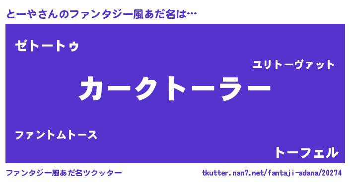 | 欧米人風あだ名 | 『とーや・ステッグマイヤー』 |
