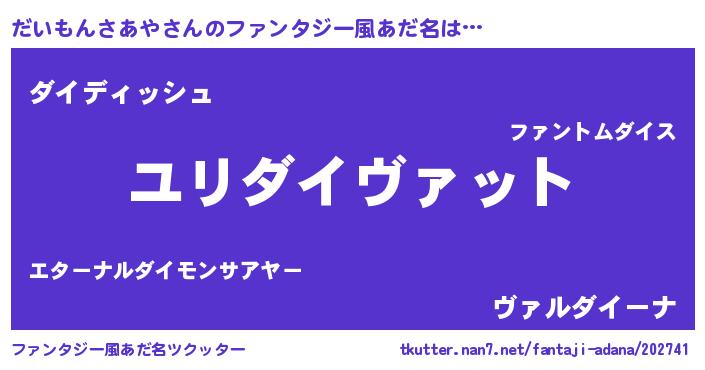 | 胡散臭い通販商品みたいなあだ名 | 『絶対に幸福をもたらす健康食品…その名も「だいもんさあや」』 |