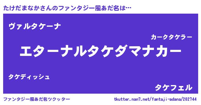 | 女子向けラノベタイトル風あだ名 | 『たけだまなかの雑貨屋さん』 |