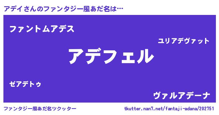 | 胡散臭い通販商品みたいなあだ名 | 『必ず成功する霊験あらたかなお札…その名も「アデイ」』 |