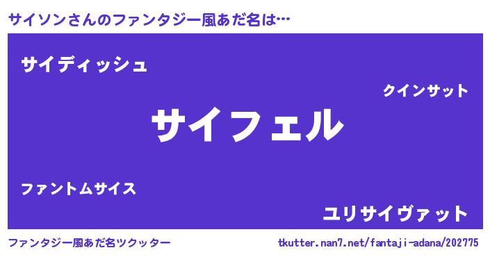 | 男性向けラノベタイトル風あだ名 | 『サイソンの憂鬱』『サイソンスレイヤー』 |
