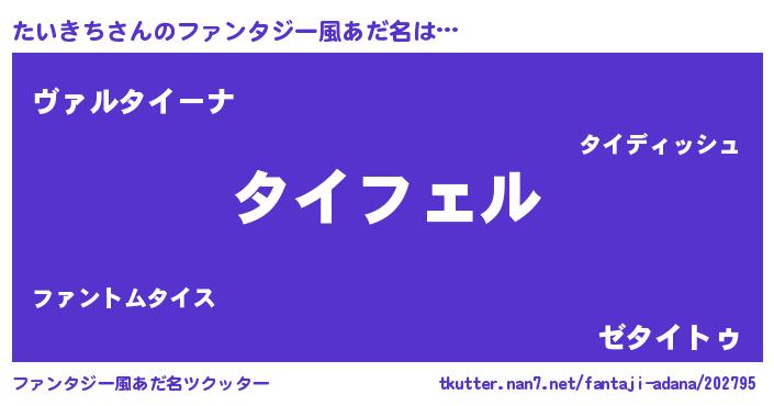 | 男性向けラノベタイトル風あだ名 | 『タイキチアートオンライン』 |