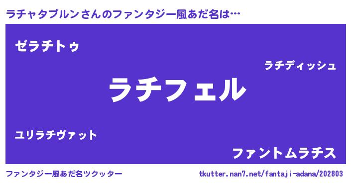 | 男性向けラノベタイトル風あだ名 | 『ラチャタプルンの憂鬱』 |
