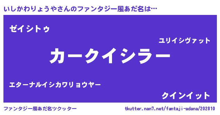 | 意味不明あだ名 | 『自称いしかわりょうや』 |