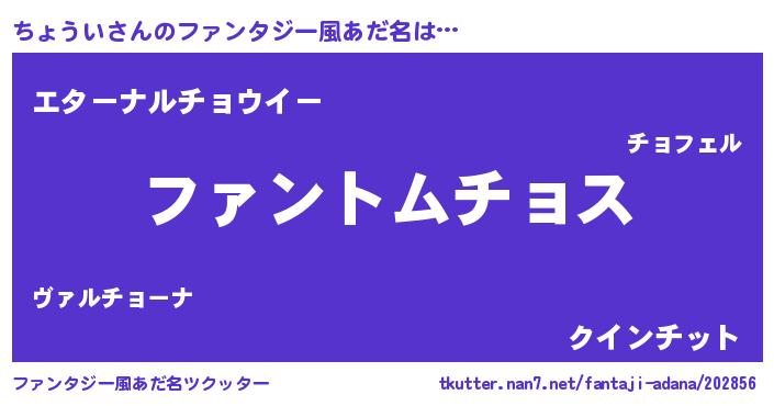 | ヒーロー風カッコイイあだ名 | 『天弓騎士チョ』『ウルトラちょういマン』 |