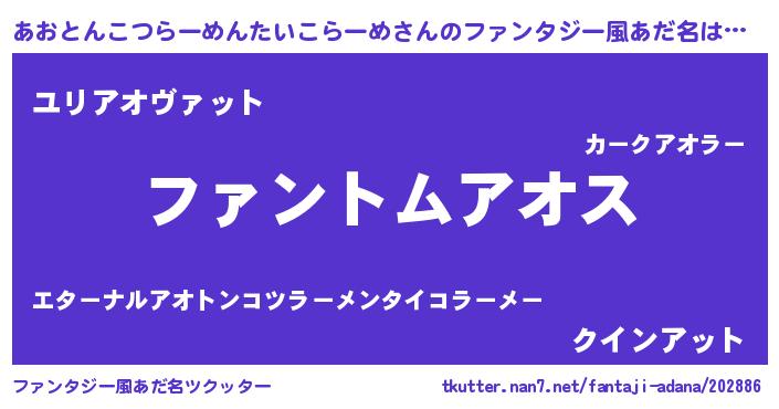 | 胡散臭い通販商品みたいなあだ名 | 『信頼と実績のサプリメント…その名も「あおとんこつらーめんたいこらーめ」』 |