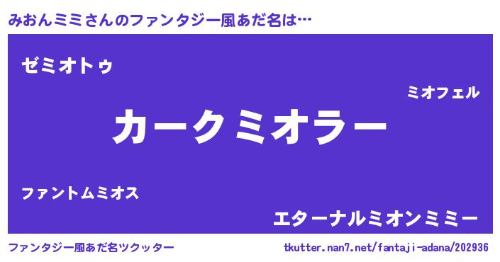 | 欧米人風あだ名 | 『みおんミミ・ステッグマイヤー』 |