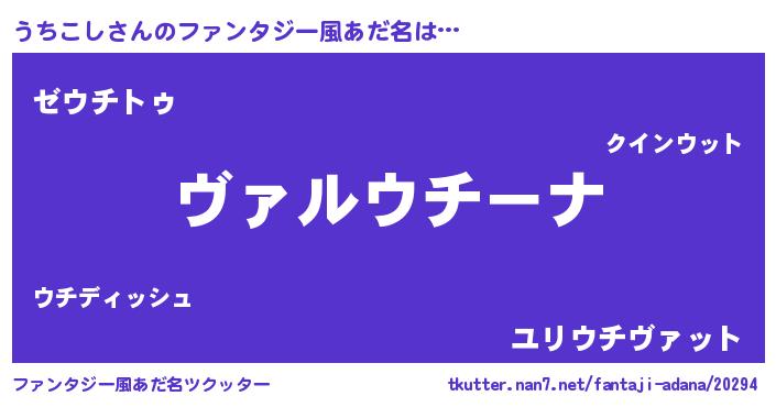 | 男性向けラノベタイトル風あだ名 | 『この素晴らしい世界にうちこしを!』 |