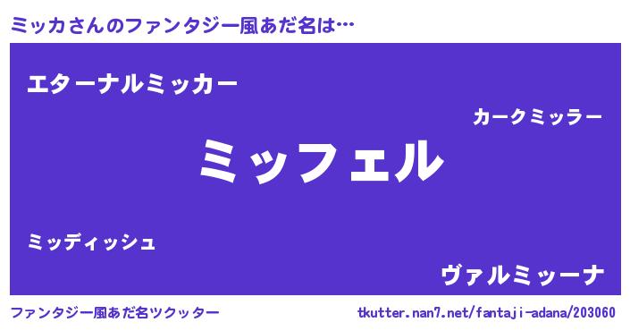| 意味不明あだ名 | 『ペロリンミッカ』『ミッカフォーエバー』 |