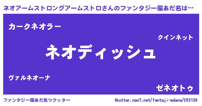 | 意味不明あだ名 | 『永久保存ネオアームストロングアームストロ』 |