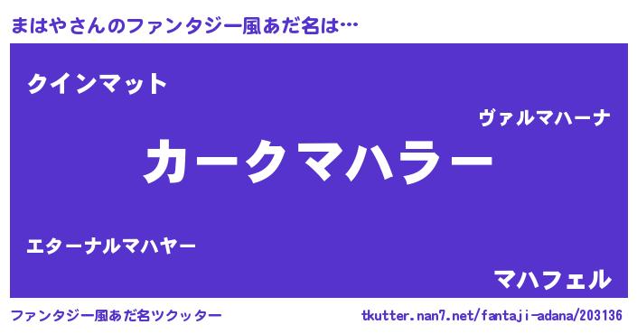 | 欧米人風あだ名 | 『まはや・ステッグマイヤー』 |