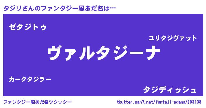 | 男性向けラノベタイトル風あだ名 | 『この素晴らしい世界にタジリを!』 |