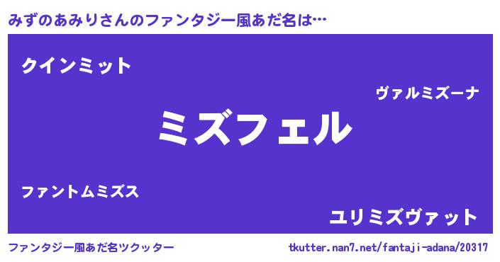 | 胡散臭い通販商品みたいなあだ名 | 『必ず成功する霊験あらたかなお札…その名も「みずのあみり」』 |
