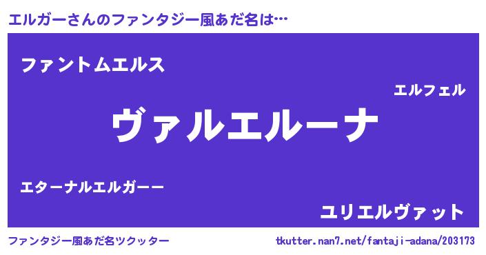 | 男性向けラノベタイトル風あだ名 | 『この素晴らしい世界にエルガーを!』 |