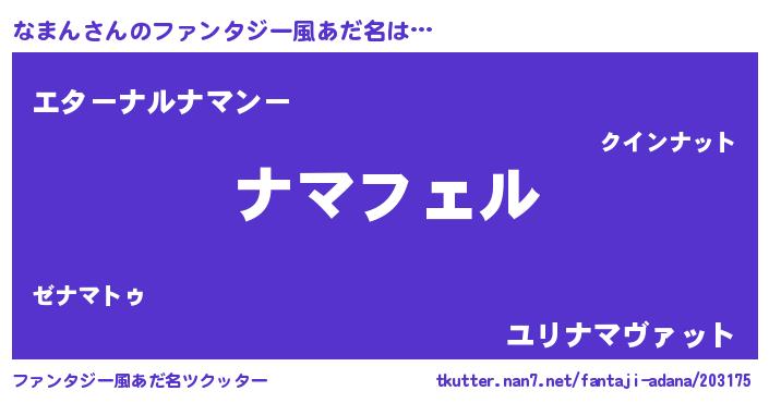 | 男性向けラノベタイトル風あだ名 | 『なまんに滅ぼされるだけの簡単なお仕事です』 |