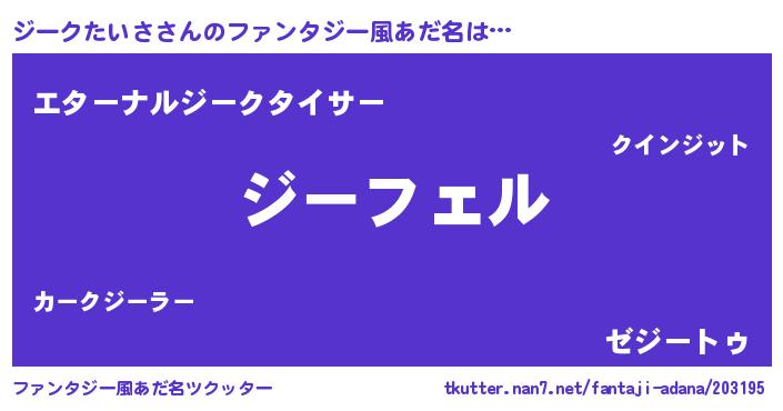 | ヒーロー風カッコイイあだ名 | 『スーパージークタイサ』『幻影騎士ジー』 |