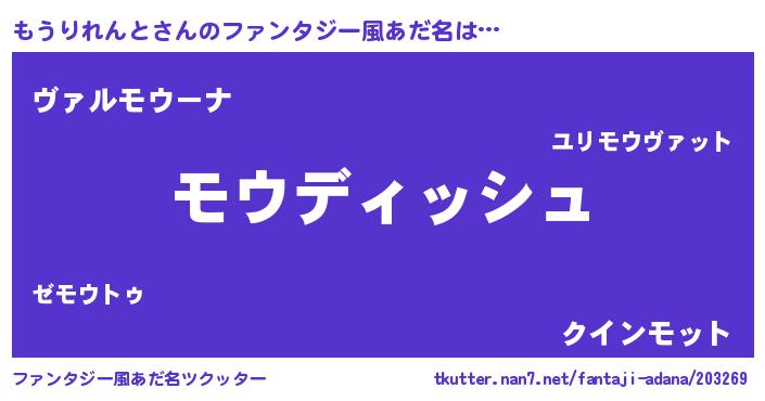 | 欧米人風あだ名 | 『アンジェラ・もうりれんと』 |