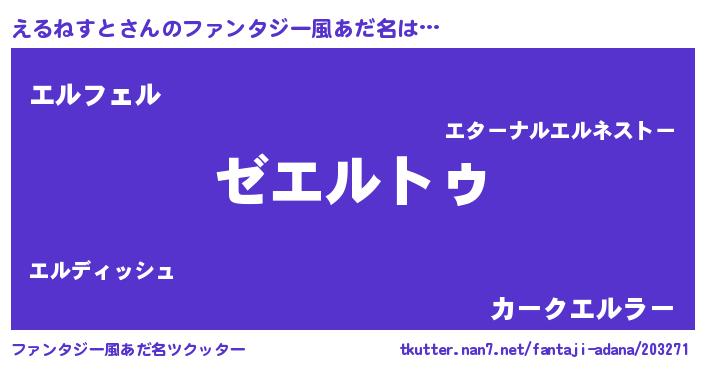 | 男性向けラノベタイトル風あだ名 | 『Re:えるねすとから始める異世界生活』 |