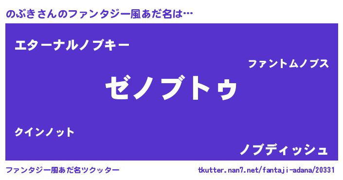 | 男性向けラノベタイトル風あだ名 | 『Re:のぶきから始める異世界生活』 |