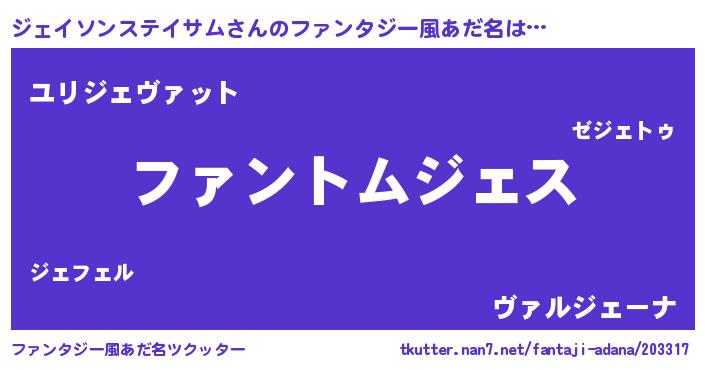 | 男性向けラノベタイトル風あだ名 | 『ジェイソンステイサムの嫁は女の子じゃないと思った?』 |