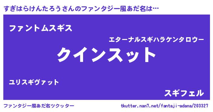 | ポケモン風あだ名 | 『スックウザ』『ヒスギハラケンタロウ』 |