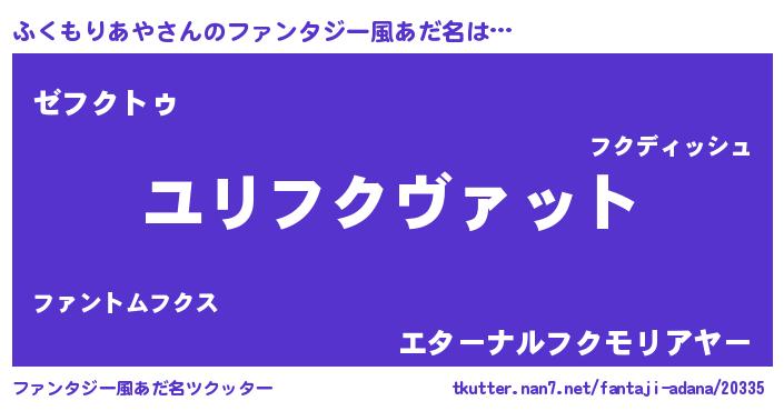 | 男性向けラノベタイトル風あだ名 | 『フクモリアヤスレイヤー』 |