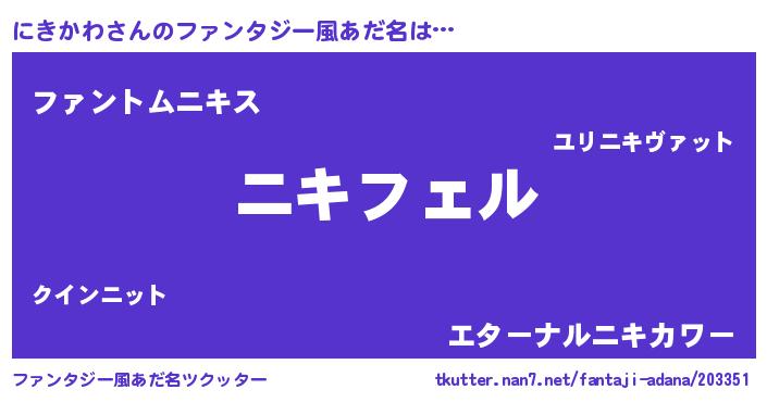 | ヒーロー風カッコイイあだ名 | 『スーパーニキカワ』『魔戒騎士ニキ』 |