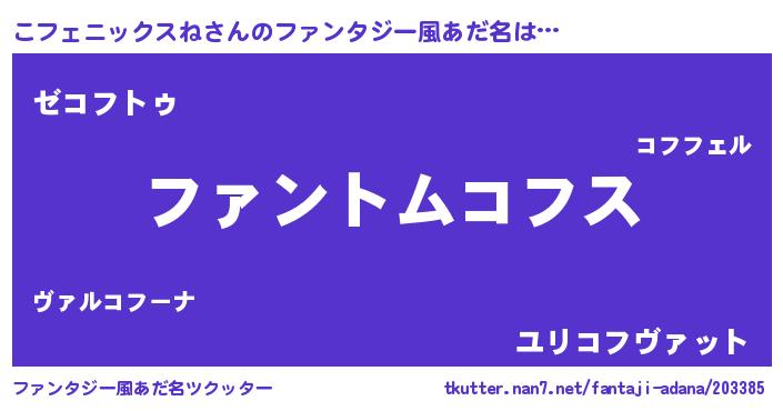 | 女子向けラノベタイトル風あだ名 | 『こフェニックスねは平凡を望む』 |