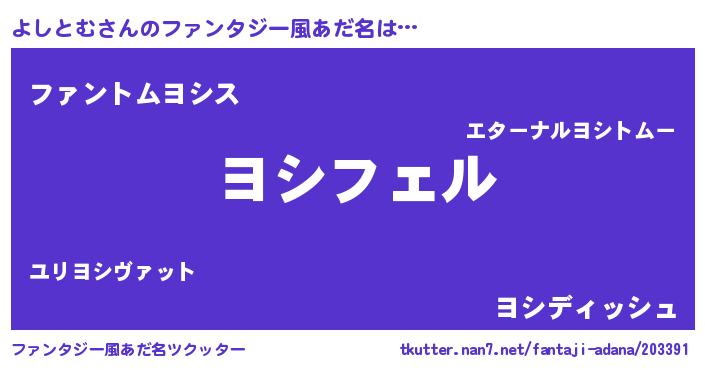 | 胡散臭い通販商品みたいなあだ名 | 『必ず成功する水晶球…その名も「よしとむ」』 |