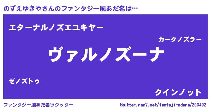| 男性向けラノベタイトル風あだ名 | 『魔弾の王とのずえゆきや』 |