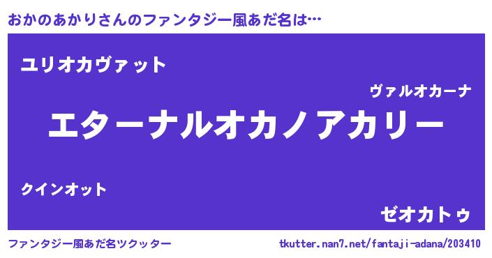 | 欧米人風あだ名 | 『おかのあかりクリステル』 |