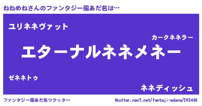 | 意味不明あだ名 | 『ねねめねフォーエバー』『自称ねねめね』 |