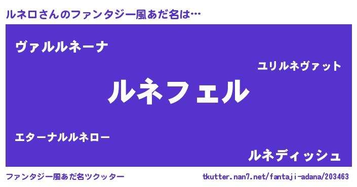 | 男性向けラノベタイトル風あだ名 | 『ルネロの憂鬱』『魔弾の王とルネロ』 |