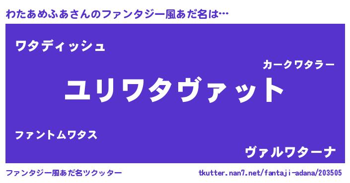 | 欧米人風あだ名 | 『アンジェラ・わたあめふあ』 |