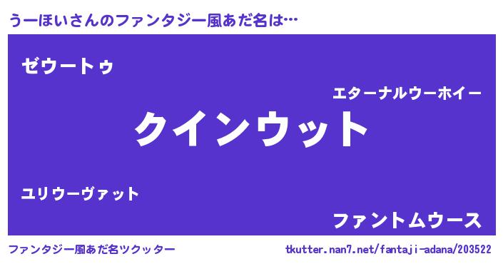 | ヒーロー風カッコイイあだ名 | 『正義の使者うーほい』『炎刃騎士ウー』 |