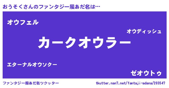 | 自動車の名前っぽいあだ名 | 『フェオーウ』『オウティマ』 |