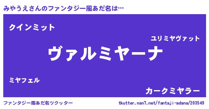 | ヒーロー風カッコイイあだ名 | 『仮面ミヤダー』『慈愛の使者みやうえ』 |