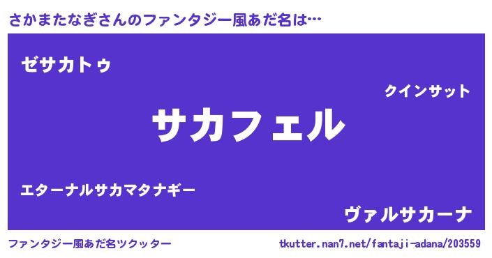 | ヒーロー風カッコイイあだ名 | 『スーパーサカマタナギ』『仮面サカダー』 |