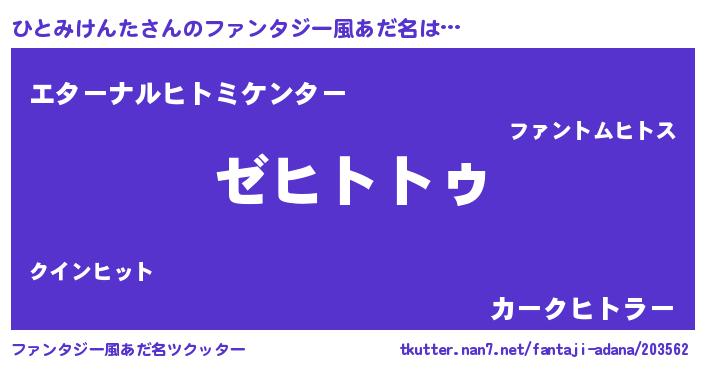 | 男性向けラノベタイトル風あだ名 | 『Re:ひとみけんたから始める異世界生活』 |