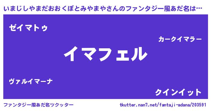 | 欧米人風あだ名 | 『マイケルいまじしやまだおおくぼとみやまや』 |