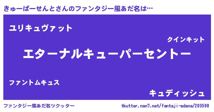| 胡散臭い通販商品みたいなあだ名 | 『運命の人と巡り会える高級そうな壺…その名も「きゅーぱーせんと」』 |
