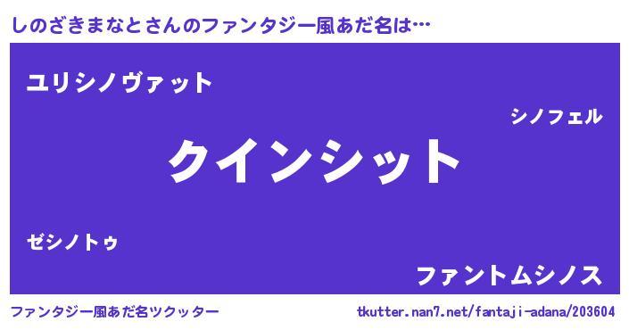 | 女子向けラノベタイトル風あだ名 | 『しのざきまなと恋絵巻』 |