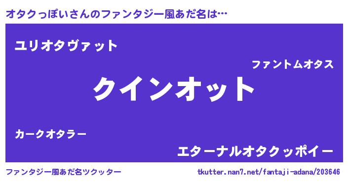 | 男性向けラノベタイトル風あだ名 | 『おまえをオタクにしてやるから、俺をオタクっぽいにしてくれ! 』 |